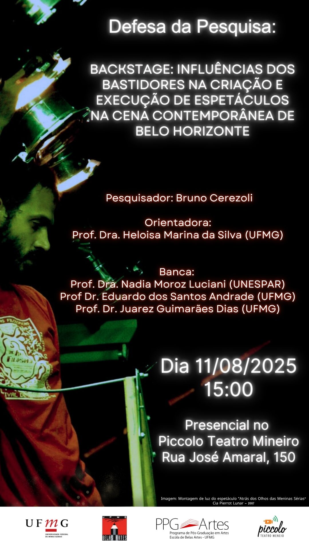 A defesa se realizará no dia 11/08/2025 às 15:00 no Piccolo Teatro Mineiro.