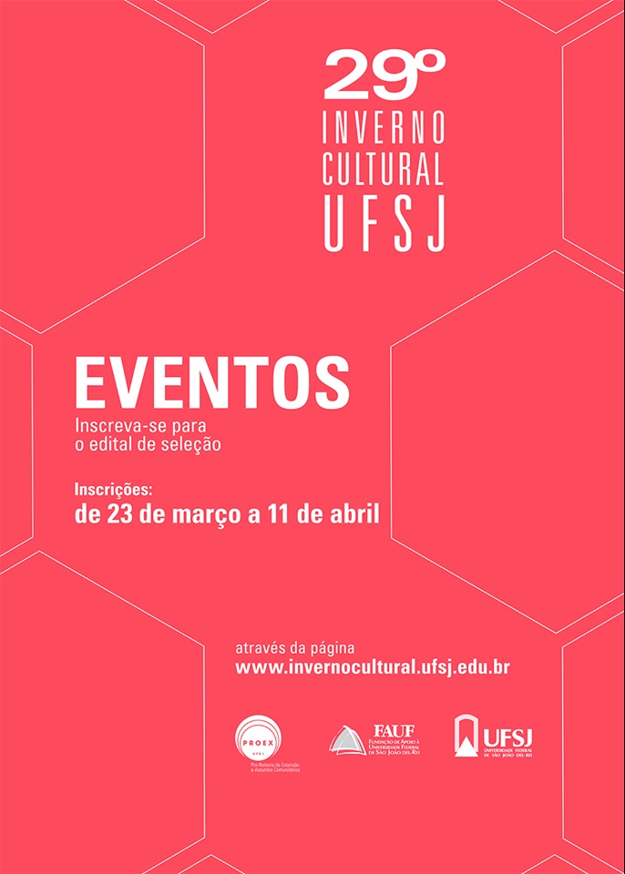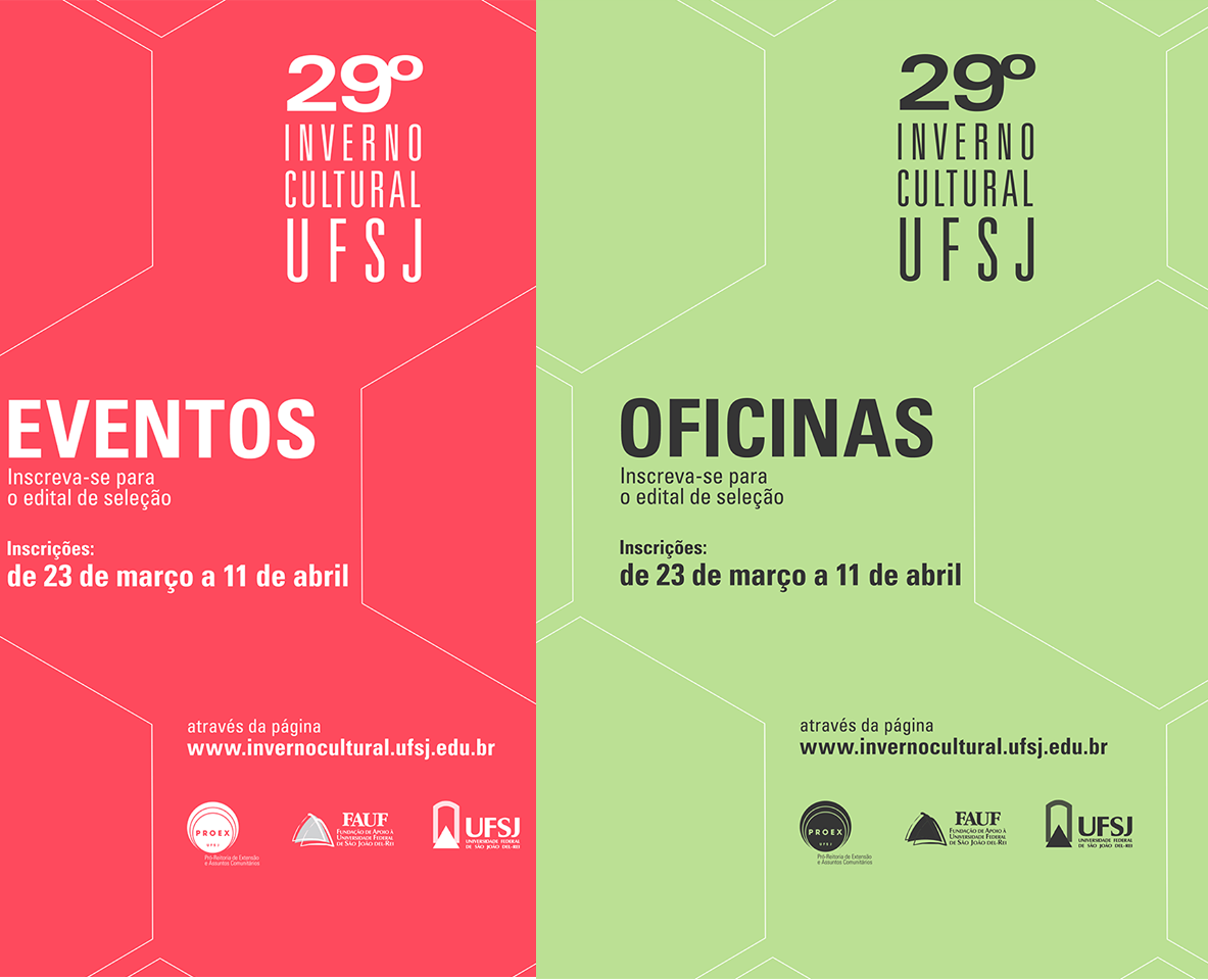 Entre os dias 23 de março a 11 de abril estarão abertas as inscrições para ministrar oficinas, realização de exposições, palestras, lançamento de livros, dentre outras modalidades, do 29º Inverno Cultural da Universidade Federal de São João del Rei.