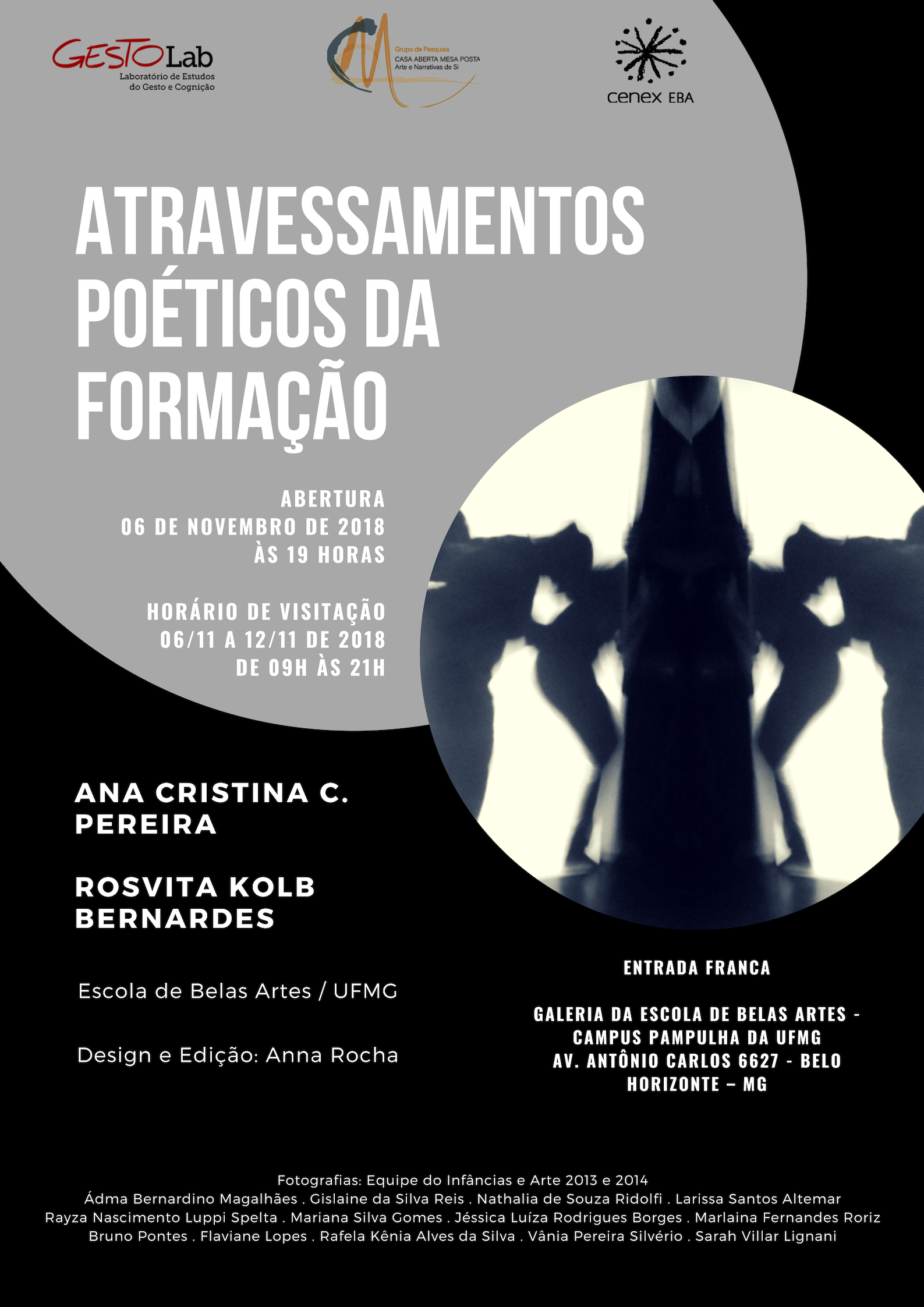 As artistas e professoras da Escola de Belas Artes da UFMG, Ana Cristina C. Pereira e Rosvita Kolb Bernardes apresentam um conjunto de imagens que se desenvolve a partir de recortes das fotografias que constituíram o acervo de registro do processo de formação no Curso de Extensão Educação Infantil, infâncias e Arte para professores de Educação Infantil,realizado em 2013 e 2014, com a parceria do Ministério de Educação e Cultura (MEC), do Fundo de Nacional de Educação e Cultura (FNDE) e da Universidade Federal de Minas Gerais. Neste período o curso atendeu 11 secretarias municipais da cidade de Belo Horizonte e Região Metropolitana.
