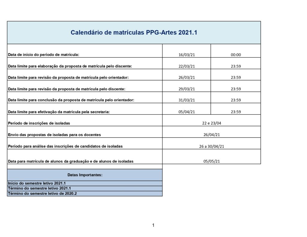 As inscrições para disciplinas isoladas para o Semestre 2021.1 serão nos dias 22 e 23/04, e ainda serão divulgadas as vagas disponíveis e os procedimentos para inscrição.