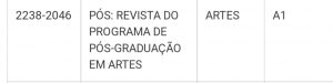 A Revista Pós do Programa de Pós-graduação em Artes da UFMG foi qualificada como A1 na última avaliação quadrienal da CAPES 2017 – 2020. A qualificação A1 é a mais alta e reconhece a relevância e a importância da publicação na área de Artes. Para conhecer mais sobre a Revista, acesse o link abaixo: