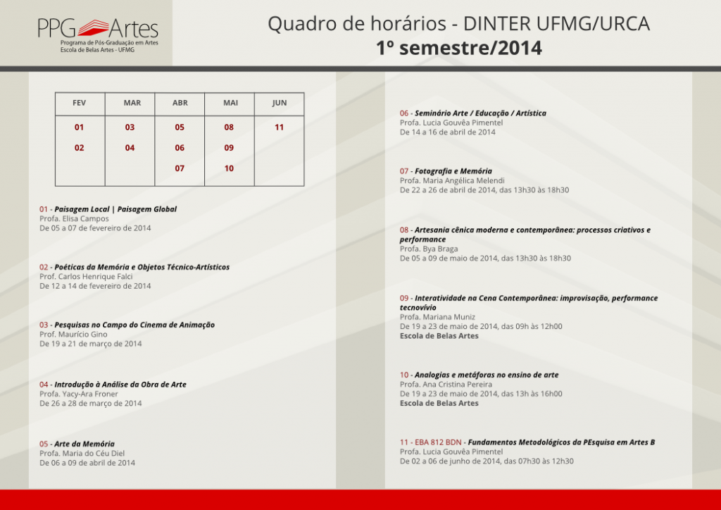 13 de dezembro de 2013AOS CANDIDATOS QUE PARTICIPARAM DO PROCESSO SELETIVO 2014 (realizado em 2013) do PPG-Artes EBA/UFMGsaiba mais